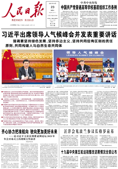 今天《人民日报》的主要内容有: 1、齐心协力把准航向,驶向更加美好未来。 2、王毅:中方期待东盟领导人特别会议实现三个“有利于”。 3、外交部发言人驳美国会有关涉华法案。 4、全国人大常委会法工委发言人:今年立法项目多于往年。 5、国务院安全生产考核巡查组进驻各地。 6、文旅部规范旅游市场经营,深入整治“不合理低价游”等突出问题。 7、一季度电信业务总量增长27.4%,5G手机终端用户连接数达2.85亿户。 8、中埃签署新冠疫苗在埃及本地化生产合作协议。