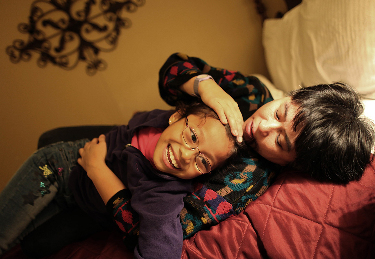 2015年2月,马里兰州,Hope Green和妈妈Carrie Green聊天。Hope于2002年在陕西汉中被收养,当时不到两岁。