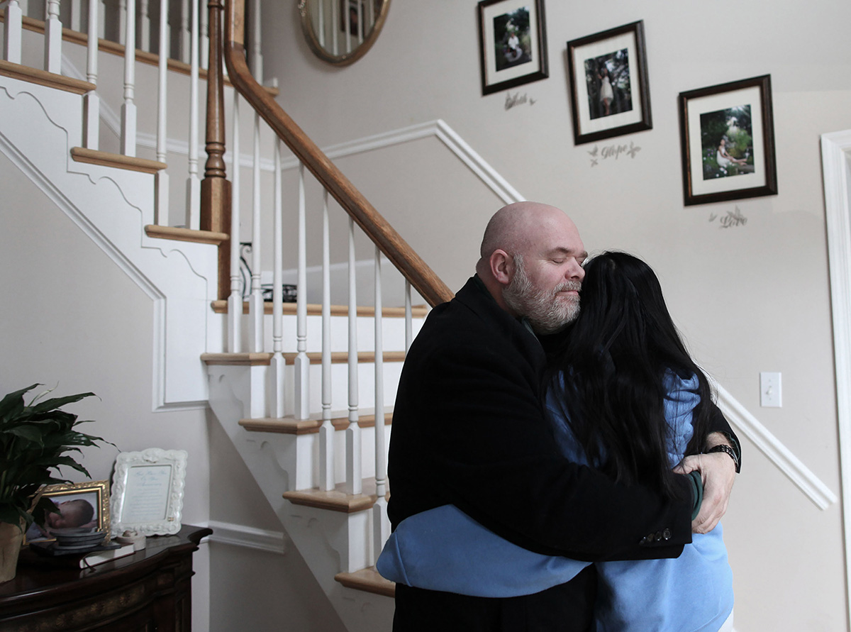 2015年3月,佛吉尼亚州,Taylor 抱着爸爸告别。Stacy夫妇收养三个亚洲孩子,一个在中国收养,另外两个从柬埔寨收养。