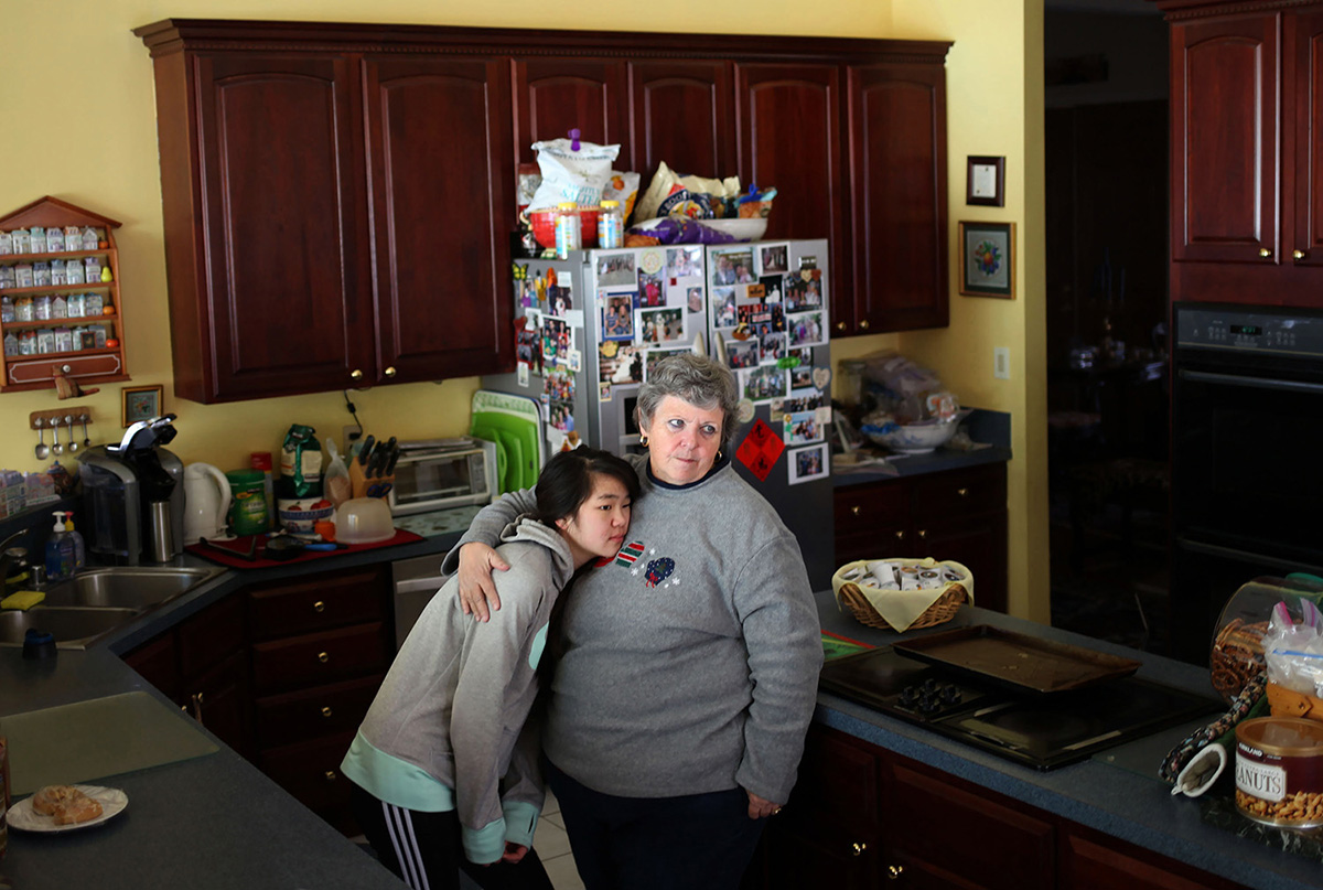 2014年11月26日,美国宾夕法尼亚州,Alyssa(阿莉莎)和Cheryl Wu(谢丽尔)过感恩节。谢丽尔收养阿莉莎时已近50岁了,她在华盛顿特区做教师,专门负责帮助有特殊需要的孩子。“我的工作一直是帮助那些残疾孩子,所以一直希望能在中国福利院收养一个需要家的孩子,亲自照顾她。”谢丽尔说。