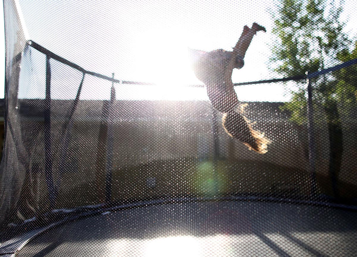 2015年8月,蒙大拿州米苏拉市,Anaka在跳蹦床。Anaka(党芳婷)生于2006年5月25日,2007年7月,在广东省阳江市阳东区福利院被收养。此后Anaka一直生活在美国蒙大拿州。