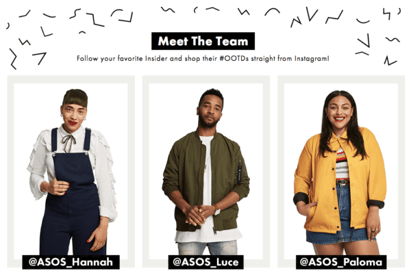 其次,ASOS 也非常善于打造社群。从品牌公关的层面看,ASOS 想得更远,它不希望自己只是重复把各种名人请来站台、吸引一批粉丝造势,然后散场的传统营销活动。它的策略是,建设一个“ASOS Insider”社群(网站+社交媒体),专门连接符合品牌调性的KOL,尤其是各种穿搭博主和核心受众(Fashion Loving 20-something, 热爱时尚的20多岁的年轻人),在社群中,对某个 KOL 感兴趣的粉丝可以直接通过“ASOS Insider”网页联系偶像。更重要的是,这些 KOL 会经常通过社交媒体发布一些自己身穿 ASOS 服饰的照片,这会吸引很多粉丝点击推文里面的购买链接,帮助 ASOS 引流,乃至形成复购。