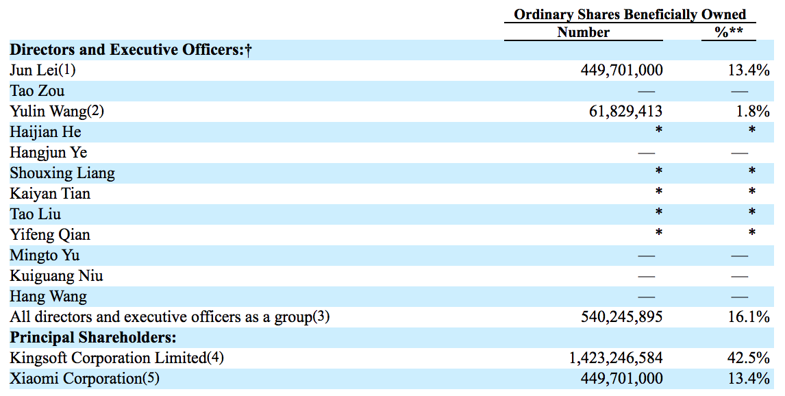 贝多财经发现,2020年报(20-F表文件)显示,截至2021年3月31日,金山云已发行在外的3,349,864,308股普通股。其中,金山云董事长、小米集团创始人、董事长兼CEO雷军的持股数为44970.1万股,持股比例为13.4%。