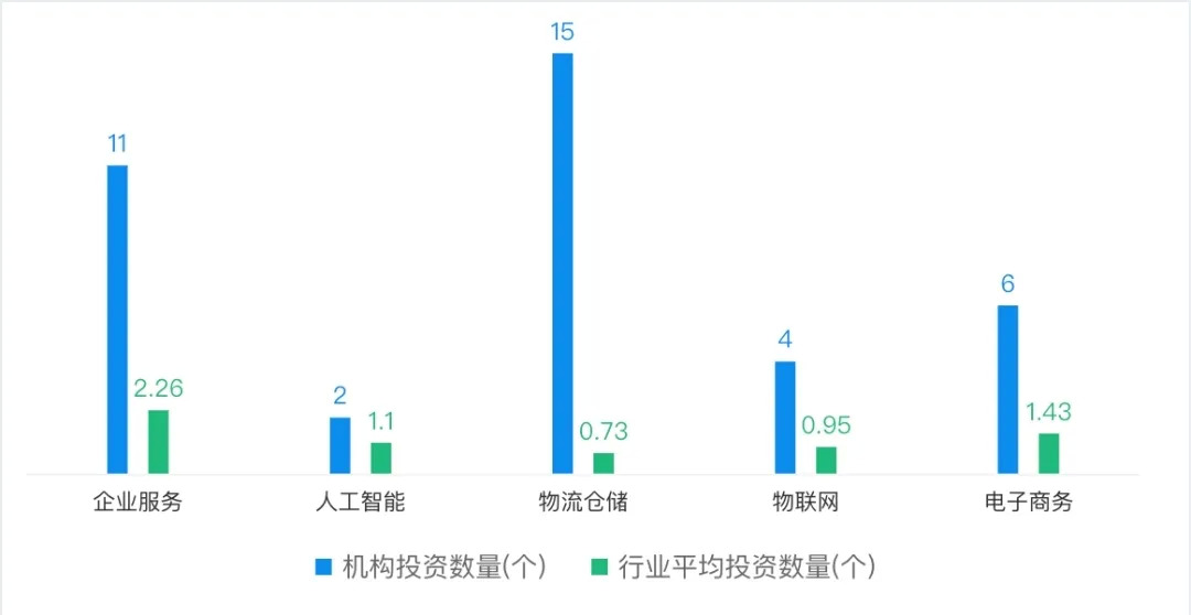 从行业分布看,顺丰控股的投资基本围绕着主业,其中,物流仓储行业的投资数量最高,达到15个;其次是企业服务,数量11起;电子商务行业数量为6,位居第三。其他分别是服务于主业的物联网、人工智能,投资数量分别为4个和2个。