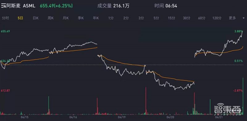 截至芯东西成文,ASML股价上涨6.25%,报655.49美元/股,总市值2709亿美元。