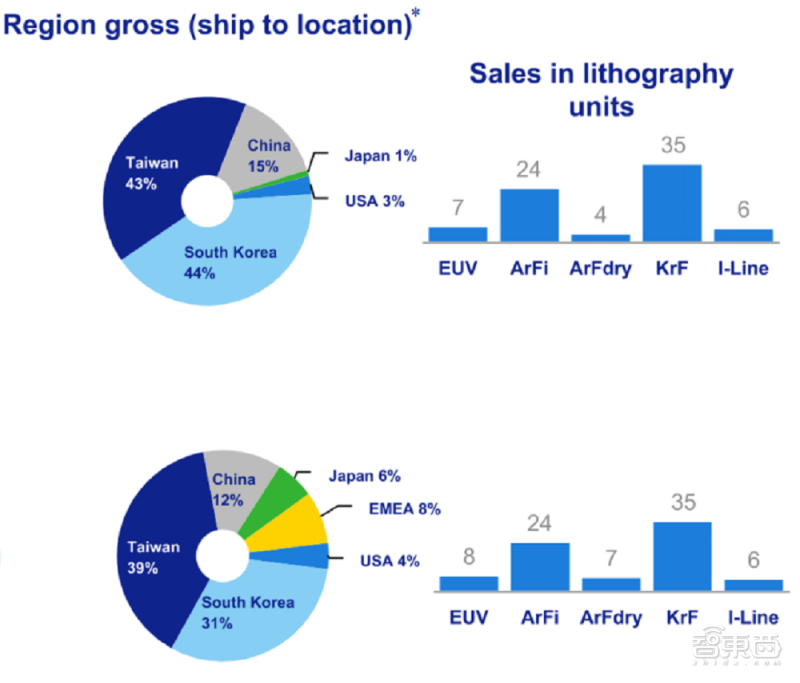 不同地区所占销售额比例与光刻机出货量(来源:ASML)