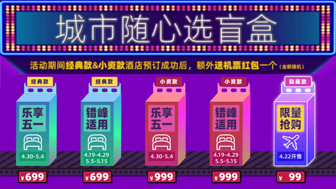 其他几大OTA又怎甘心示弱,在22日到来之前,纷纷将自己的盲盒产品上线。
