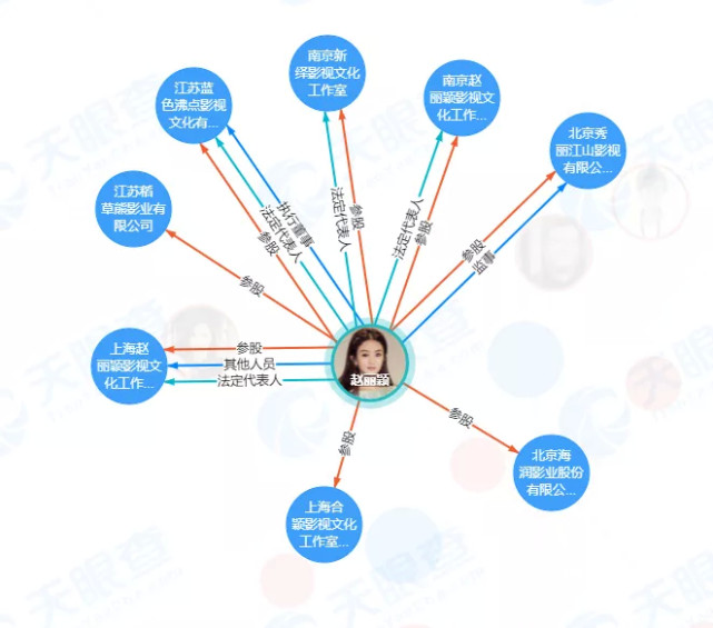据天眼查数据显示,目前赵丽颖担任法定代表人的有两家工作室,分别是上海赵丽颖影视文化工作室和南京赵丽颖影视文化工作室。