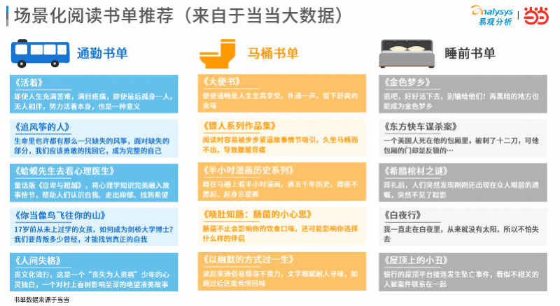 那么,人们在什么地方进行深度阅读,又在什么地方进行碎片化阅读呢?调查显示,人们喜欢在书房、咖啡店、书店、图书馆、自习室、办公室等地进行深度阅读,但随着互联网的发展和生活节奏的加快,人们的空余时间也越来越碎片化,人们在睡前、在马桶上以及在通勤时,都会进行阅读,只不过这些碎片化的阅读时间通常进行的也都是碎片化的内容。阅读也有不同的形式和渠道,除了纸质书、电子书、阅读类APP,还有社交媒体、听书平台、视频媒体、资讯平台等。