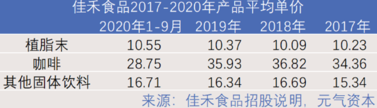佳禾食品成立于2001年5月,主营业务为加工生产和销售植脂末,同时也生产速溶咖啡粉,植脂末销售占其营业收入的85%以上。2017-2020年,公司植脂末产品的毛利率分别为29.28%、30.85%、32.78%和29.07%。