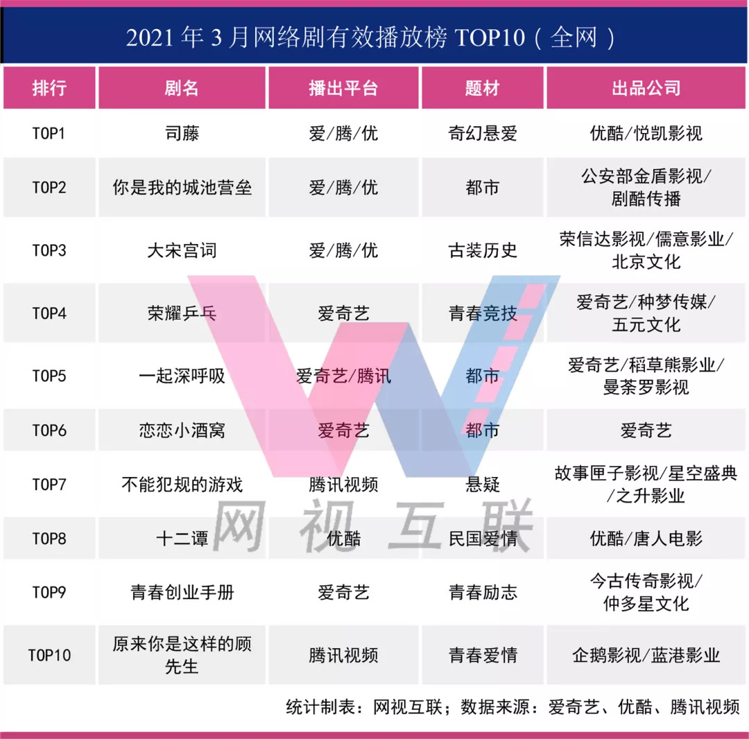 而且3月份一个明显的趋势是,霸榜网剧大多数为爱优腾三平台联播。