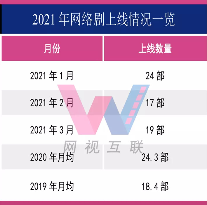 就数量而言,只能说不惊不喜。不过值得一提的是,2021年已经连续3月低于2020年月均数量,虽然数量从来都不是衡量剧集市场的唯一标准,好剧的数量才是。
