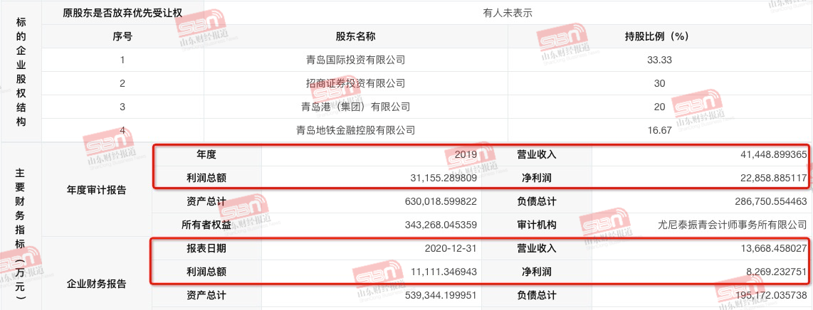 以招商投资为例,其母公司招商证券在去年底便公开披露了该转让决议。2020年12月3日,招商证券发布《第七届董事会第二次会议决议公告》,审议并通过了《关于全资子公司招商投资转让所持青岛资管30%股权的议案》并表示,挂牌价格以国有资产评估备案确认的结果为基准,最终转让价格以实际成交价为准。