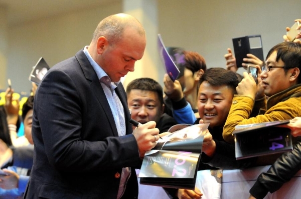 △ 2015年,在大庆斯诺克国际锦标赛期间,英格兰选手宾汉姆在红毯仪式上为球迷签名