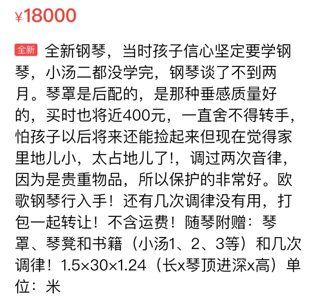 今天,打开闲鱼,上面有各种各样的二手钢琴信息,介绍中多数都会有类似这样一句话。