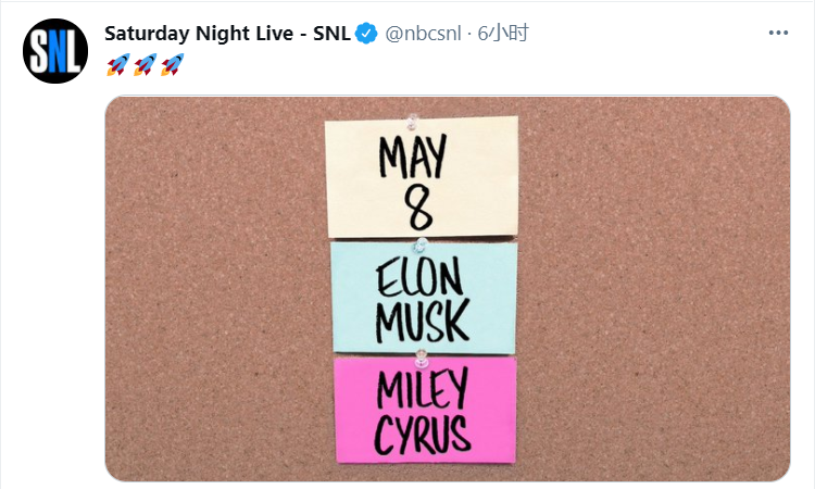 美国NBC的综艺节目《周六夜现场》(Saturday Night Live)节目组在其官方账号宣布,埃隆·马斯克(Elon Musk)将于5月8日首次主持这档老牌喜剧节目。歌手麦莉·赛勒斯(Miley Cyrus)也将会参加《周六夜现场》,并担任音乐嘉宾。