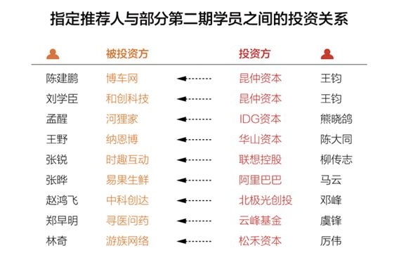 此外,在湖畔大学的保荐人很多都是专业投资人,指定保荐人和部分第二期学员之间有明确的投资关系。