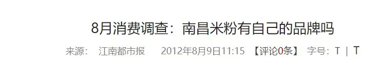 往前追溯到螺蛳粉被央视纪录片“钦点”的2012年,江西本地最大的纸媒《江南都市报》展开一场消费调查,探讨南昌米粉(原材料,非成品)是否有自己的品牌。