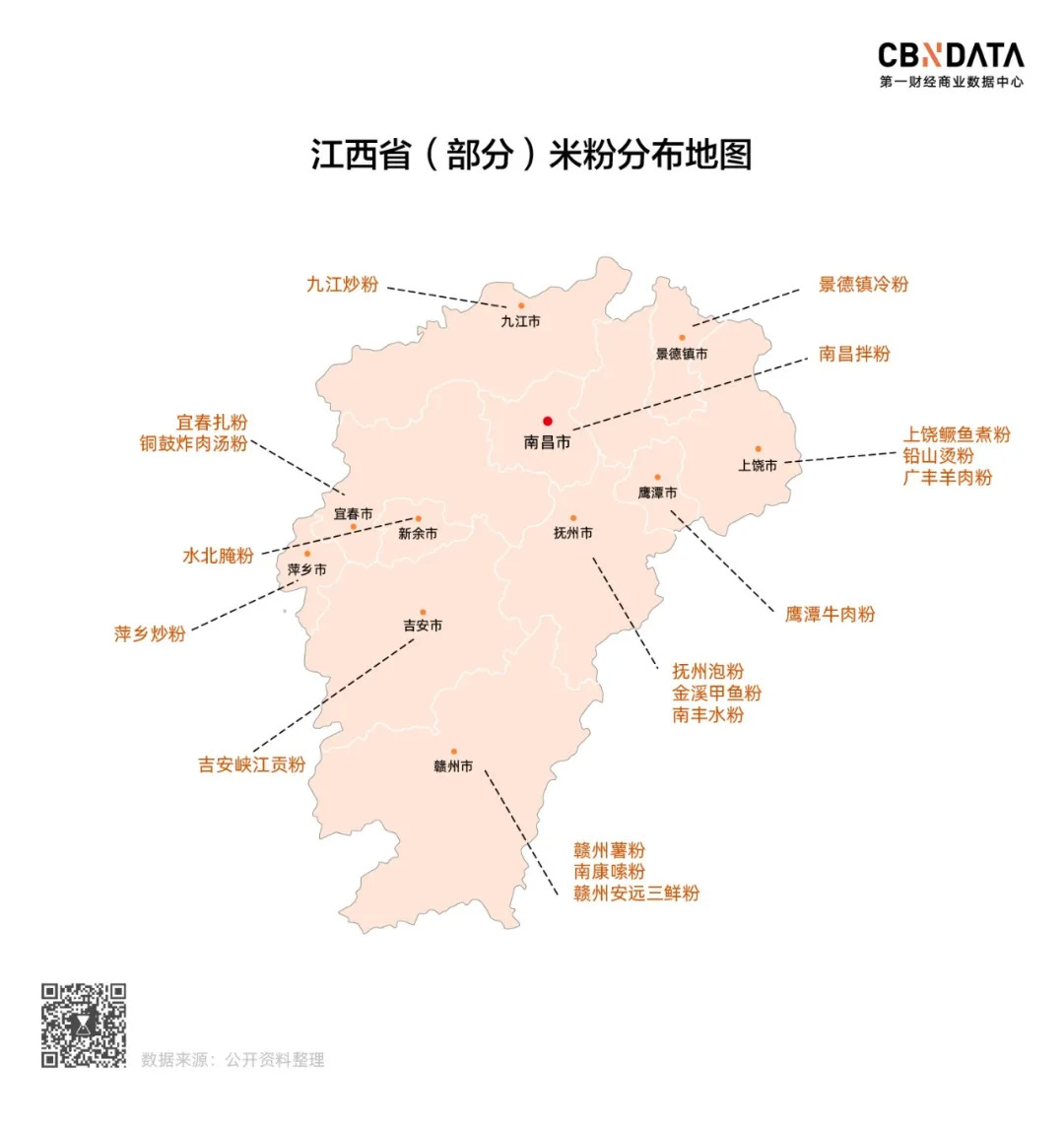 江西从北到南、从东到西几乎每个地区都拥有自己的米粉,做法完全不同。在南昌拌粉之外,还有上饶汤粉、宜春扎粉、铅山烫粉、景德镇冷粉、鹰潭牛肉粉、萍乡炒粉……