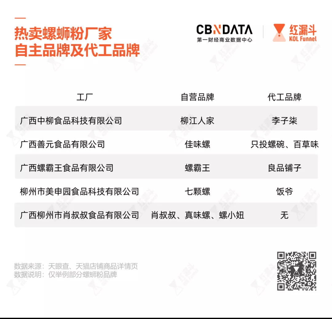 除去头部螺蛳粉品牌如好欢螺、嘻螺会、螺霸王等创立之时就拥有自家工厂,像李子柒、良品铺子、三只松鼠、百草味、饭爷等新玩家都毫不意外地选择柳州当地代工厂。