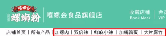 配料/小料。如嘻螺会在店铺一级页面就可以选择加臭、加辣、加腐竹、加鹌鹑蛋、加螺蛳等。