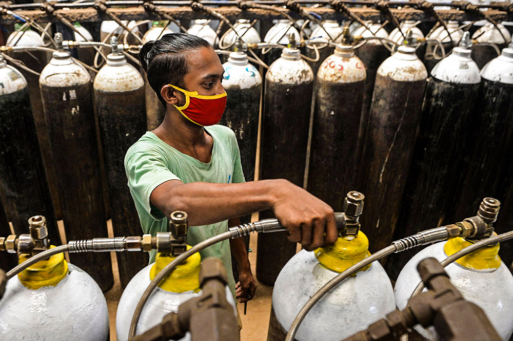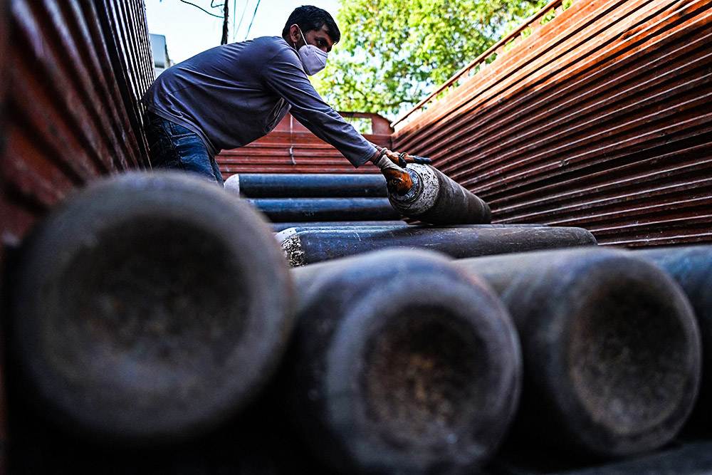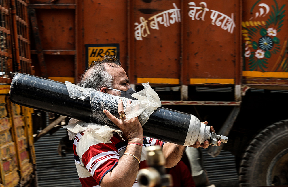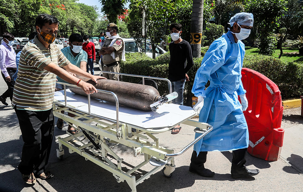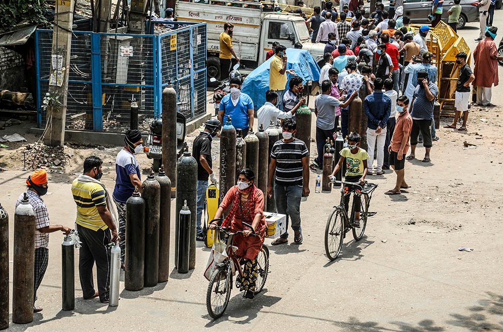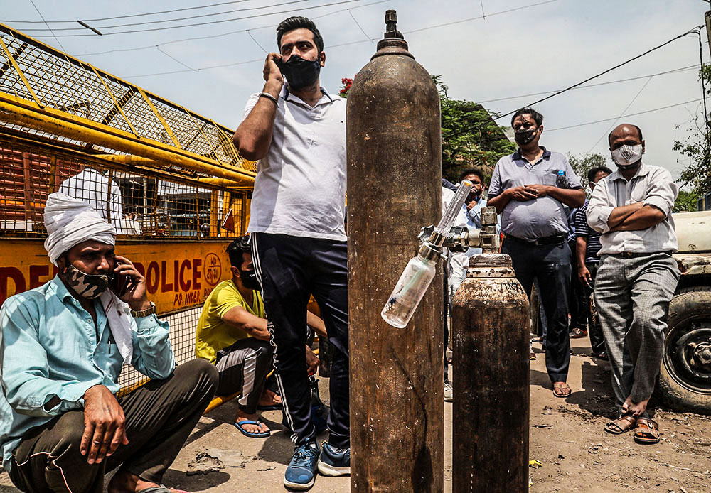各地医院面临着病床和医用氧气、呼吸机等医疗资源消耗殆尽的现状。为了缓解医疗资源短缺问题,印度政府采取了一系列措施,其中包括加大医用氧气生产和供应。医用氧气需求量飙升,让制氧企业门前排起长队,也让制氧企业感到不堪重负。与此同时,由于病亡者大量增加,很多遗体需要排队等待火化,一些逝者家属不得不自行于露天焚烧遗体。
