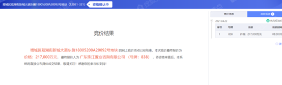 1、增城出让3宗地块,珠江投资出价21.7亿