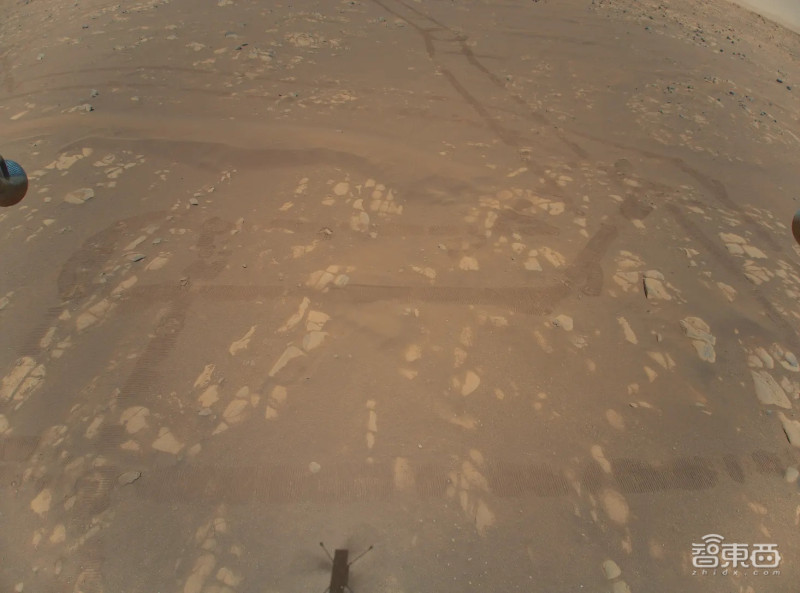 在第二次飞行中,“机智号”还在离地表上方17英尺(5.2米)处的位置拍下了第一张彩色图像。