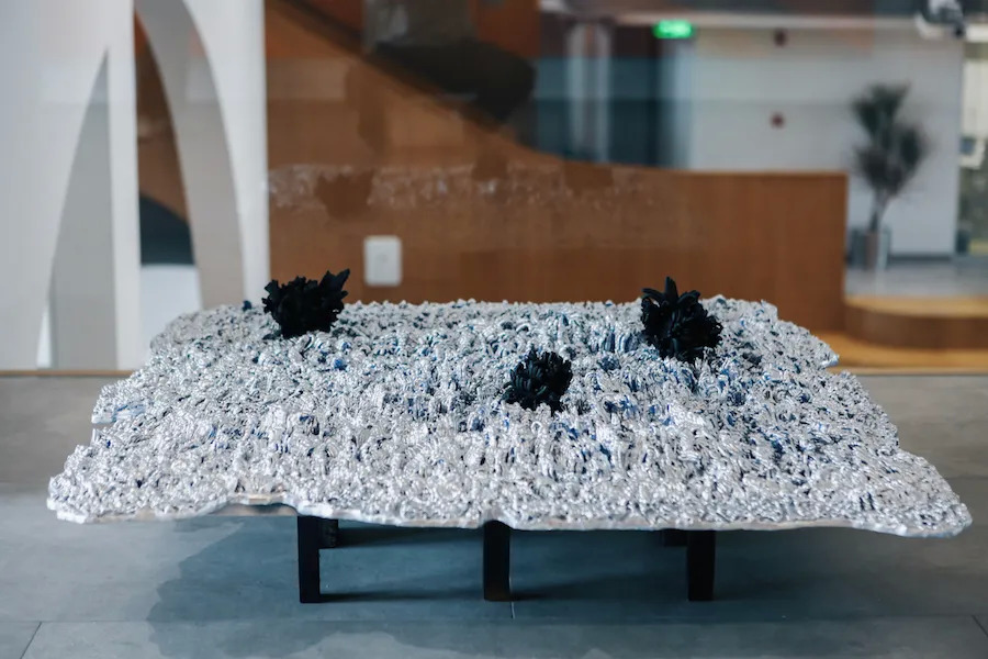 谭英杰 《曼陀罗华》, 2019,纸黏土、网布、综合材料等, 110×120×40cm