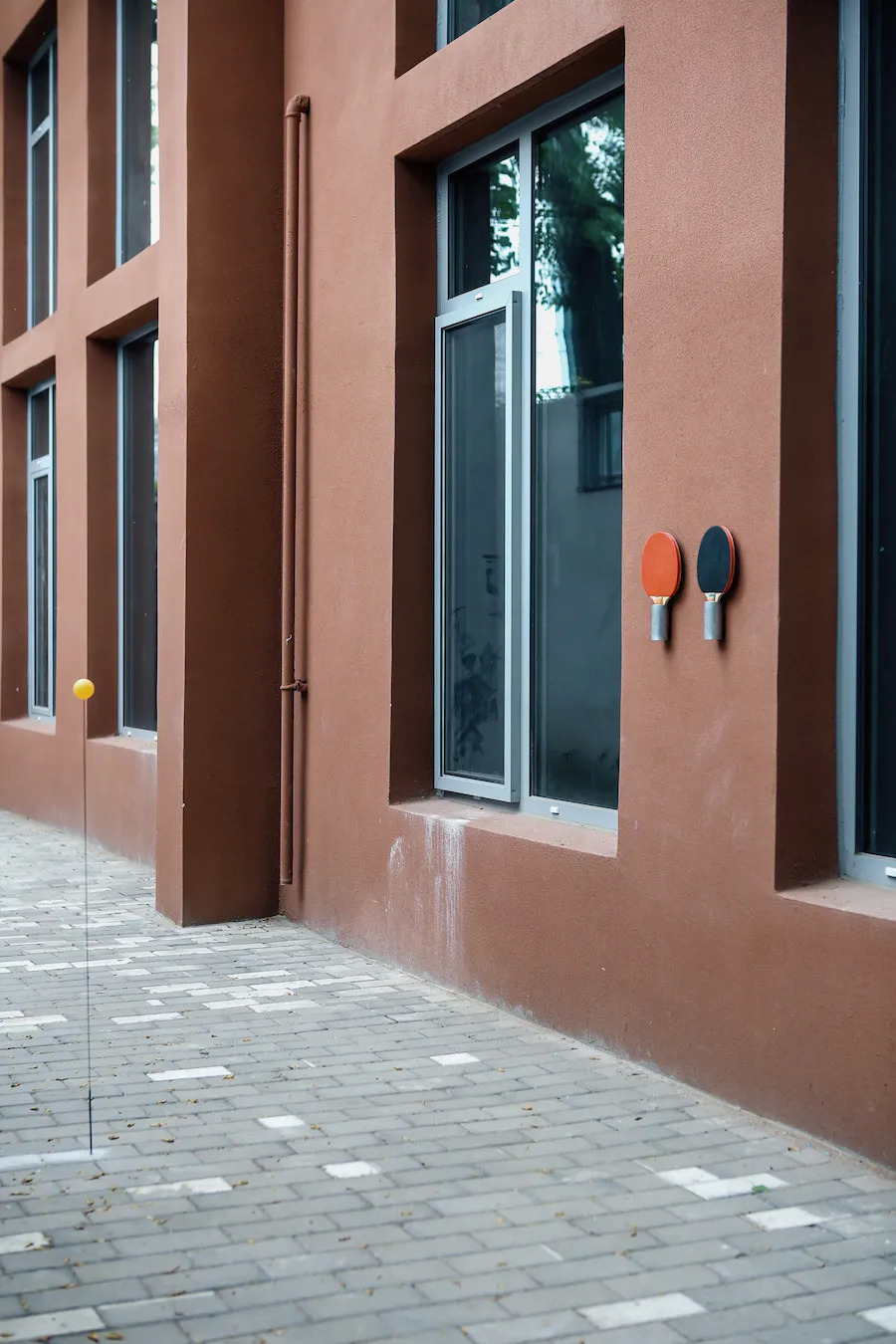 谭英杰《乒》,乒乓球训练器、乒乓球拍,互动装置(现成品),尺寸、数量可变