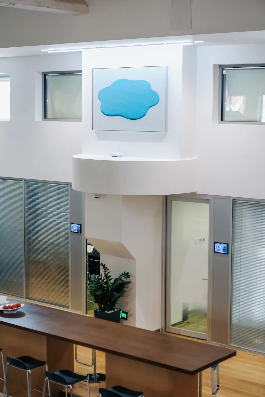 经过改建,整个工作场景体验层次更加丰富,也充满了明快的时尚感。正如首展题目提示道:“所及之处”,皆为艺术。当代艺术美学与建筑设计美学在这里相互交融。