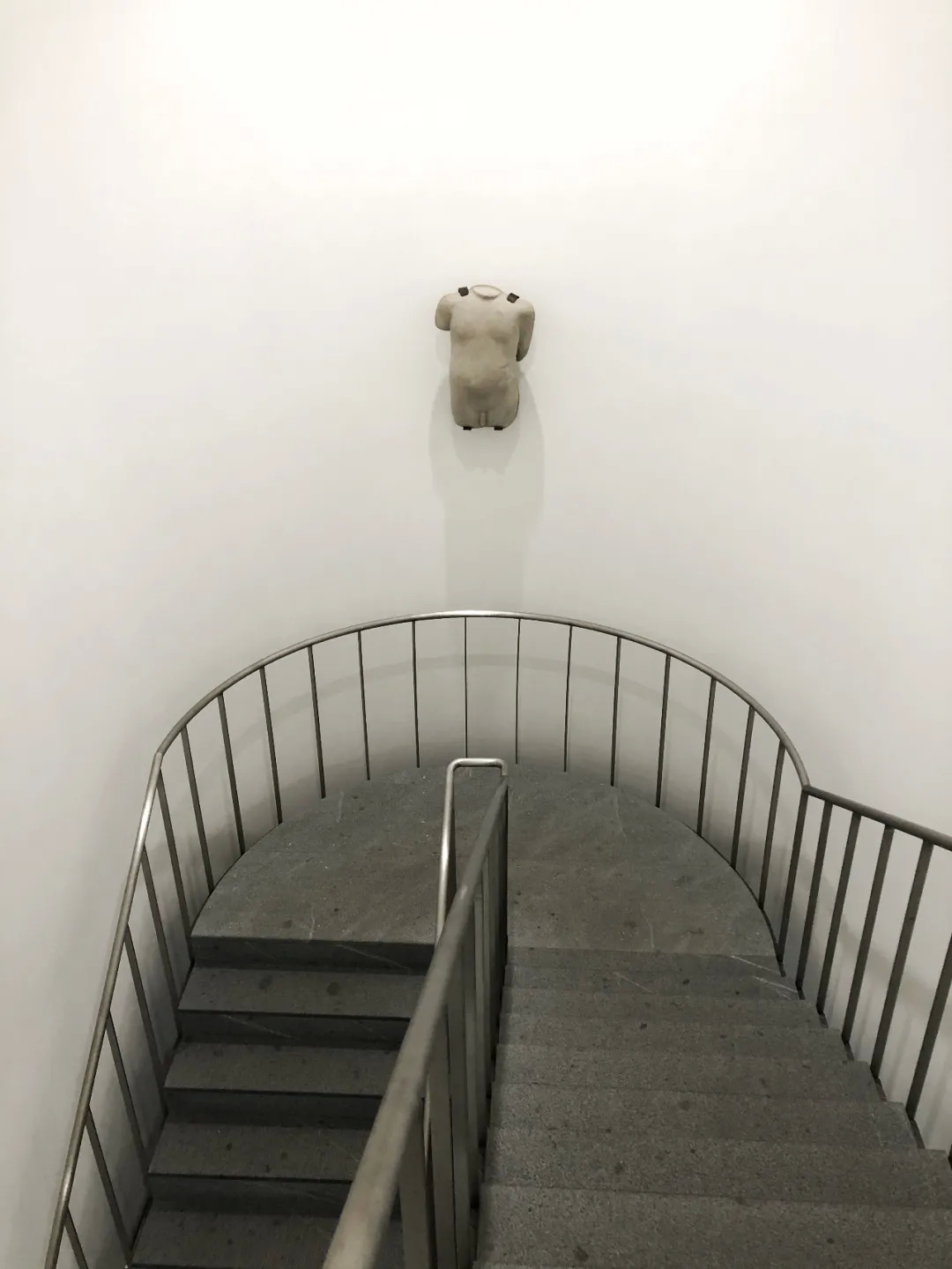 例如在整个空间的最高点展示了赵谦的作品《便宜的海洋》,在楼梯半圆形的拐角处放置了于吉的作品《石肉#3》,这些位置本身充满了象征意味和仪式感。