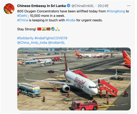 中国使馆发推宣布“800台制氧机运抵德里”