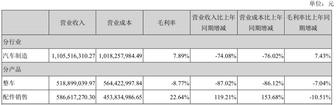 从营收构成中可以发现,配件销售的营收占比达42.66%,营收较上年同期上涨119.21%,上年同期该产品的营收占比仅为5.71%,2020年是首次超过整车营收成为支撑公司业绩的大头。