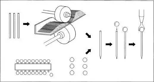 第一个人负责进料,第二个人负责拉直,第三个人负责切断,第四个人负责装配,第五个人负责打磨。雇员的工作可能是乏味的,但是我们,或者说我们的老板,会变得更加富有。