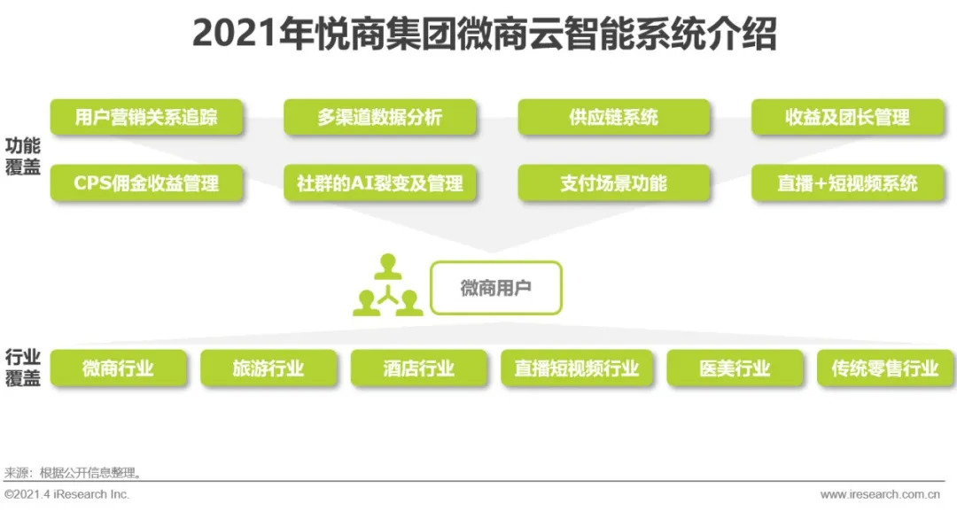 悦商集团是一家专注于为数量巨大的基层微商以及社交电商提供技术支撑的SaaS服务的企业,已于2020年7月在纳斯达克OTC版块上市交易。其通过大数据学习、社交推荐关系、多渠道数据分析等,自主研发了面对微商的云端智能大脑系统,也是全球微商云智能领域里第一个国际化系统——微商云智能系统YCloud,可以为微商群体提供丰富的赋能工具和服务。随着微商群体的不断成熟和壮大,为悦商创造了更多的需求量,带来持续增长的发展势能。