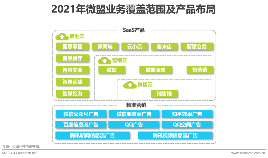微盟集团是中小企业云端商业及营销解决方案提供商,已于2019年月在港股主板挂牌上市。其围绕商业云、营销云、销售云打造、拓展智慧云端生态体系,通过去中心化的智慧商业解決方案赋能中小企业实现数字化转型,帮助客户在新零售时代提高运营效率和盈利能力。微盟精准营销业务以大数据、智能算法、营销自动化等技术及媒体源,为广告主提供一站式精准营销投放服务。