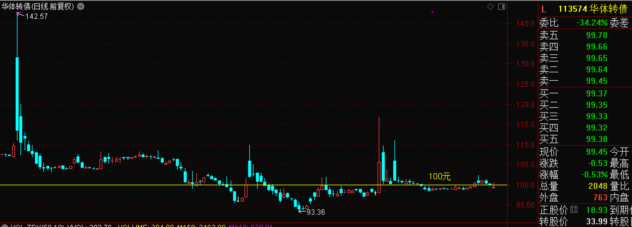 目前华体转债的现价约100元,有时候甚至还低于100元面值,而华体科技的现价,自去年8月中下旬以来,持续走低,股价从30元上方一路运行到最低不足17元,目前股价在19元附近,距离33.99元的转股价也落差较大。也就是说无论是持债还是转股,都难受。上述转了股的持有者,均录得亏损。