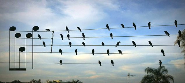 不是写作文时还常说,小鸟站在电线杆上像五线谱。