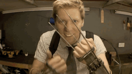 但这并不妨碍他成为民间发明家。因为老爸不让他进后院的工具房,小时候的Colin只能在卧室里默默研究刀光剑影。后来2007年父亲撒手人寰,他迅速占领了那间小小工作室,从此开始了一发不可收拾的升级打怪之旅。