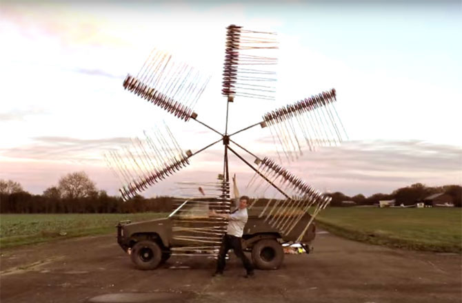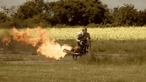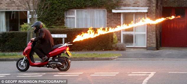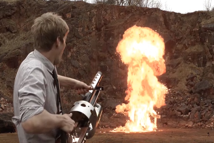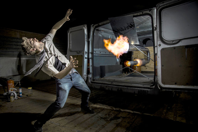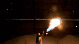 他甚至自己制作火焰喷射器,仰天长啸喷出4.6米高的火焰: