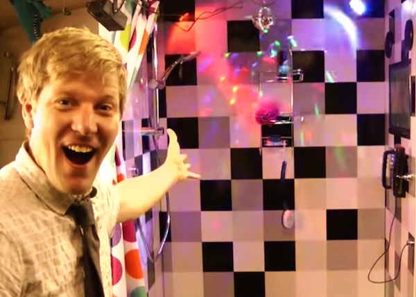 ▼ 他家的浴室自带KTV,能让你在最合适的地方一展歌喉,甚至还有评分功能: