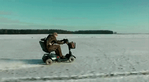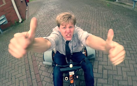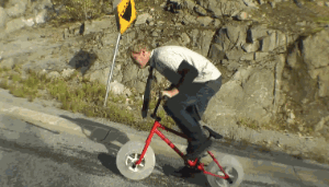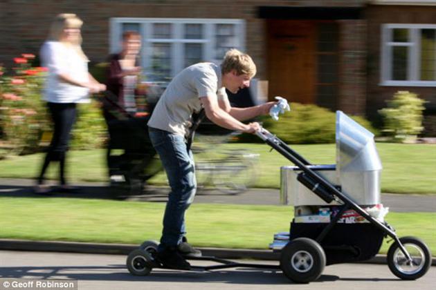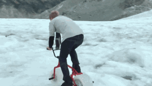 ▼ 他家的自行车有冰块轮子,虽然骑起来特别笨拙: