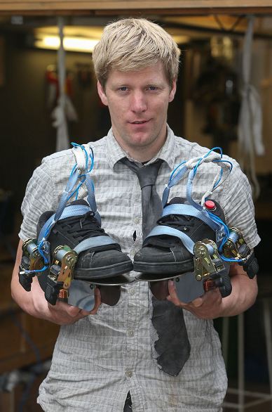 不止这样,他还从万磁王那儿得到灵感,做出了一双能倒立行走的磁力鞋: