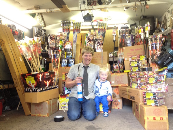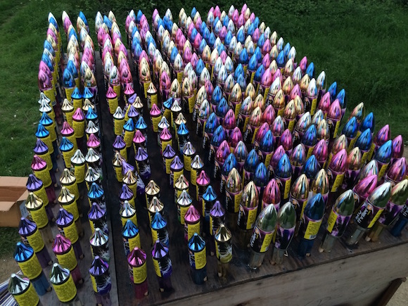 Youtube频道有100万粉丝订阅的时候,他放了300支冲天炮大肆庆祝: