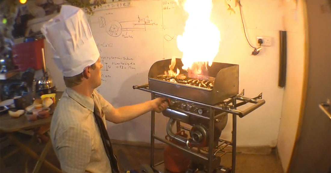 ▼ BBQ也就烤条香肠,还非得把火力加到120码: