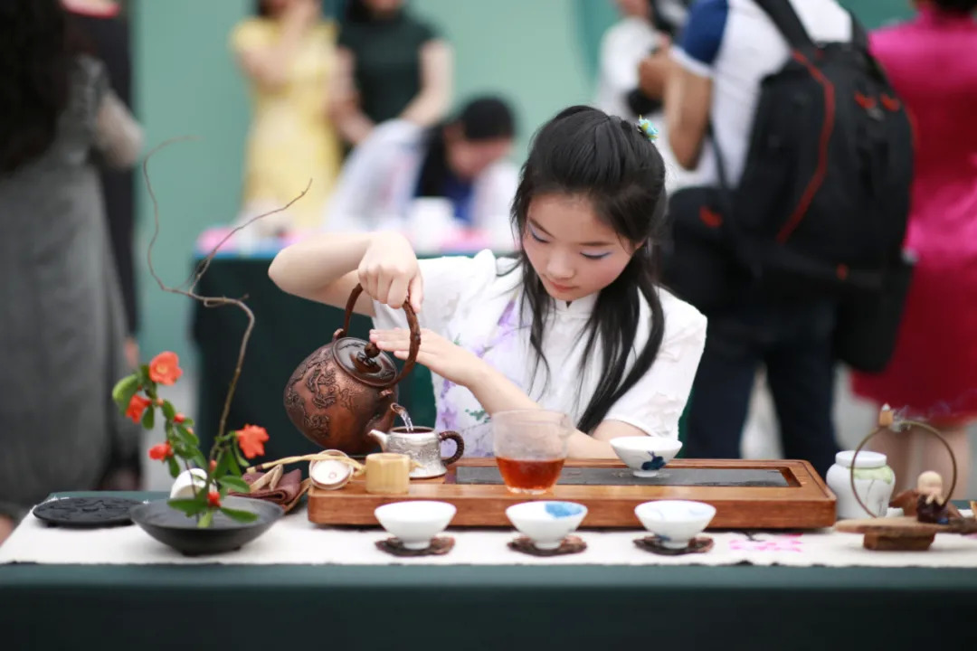 国风旗袍茶艺、变脸、长嘴壶茶艺表演、姓氏茶题写等表演集合民俗特色,传承传统文化,让人留恋往返~看了还想看!