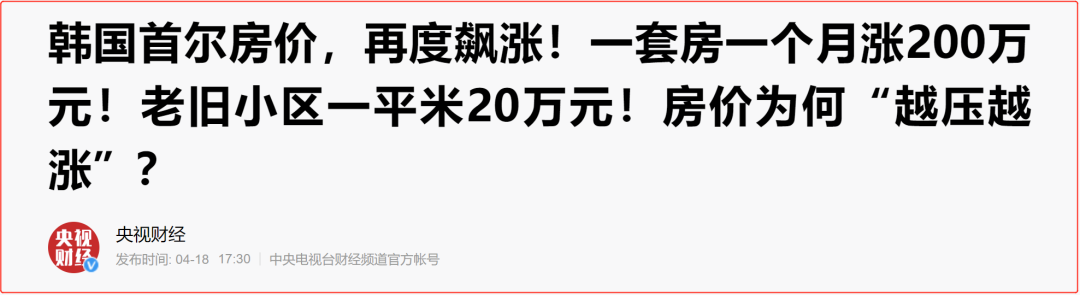 比如韩国,涨幅最大的是首尔,继2020年房价首次超过1200万韩元/平(约合7万元人民币),引发总统致辞道歉后,最近一个月,首尔市江南区某131平的公寓,售价已经突破40亿韩元(约合2300万元人民币),较上个月猛涨约合人民币200万元。