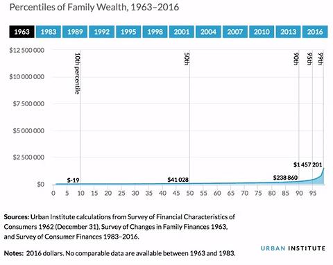 2、2016年,美国10%的顶级富裕阶层,其家庭财富大约是中产家庭财富的12倍,而在1963年,这个数据仅为6倍。