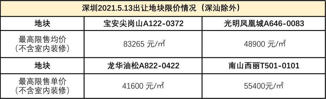 接下来5月13日,深圳集中出让的6宗宅地,无一例外也都对售价做了限价要求。